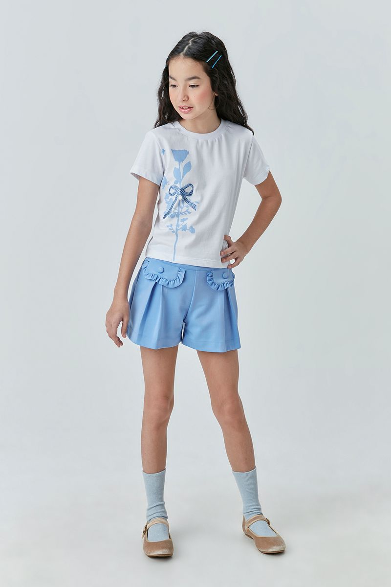 Conjunto Infantil com Blusa de Malha com Estampa e Short de Malha Ponto Roma