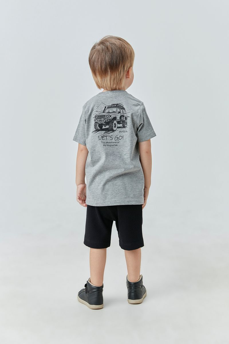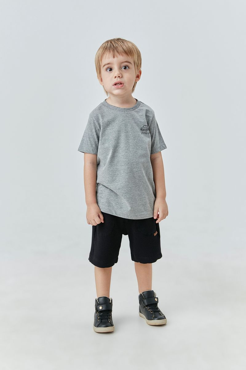 Conjunto Infanitl com Camiseta de Malha com Estampa Jeeo e Bermuda de Malha Texturizada
