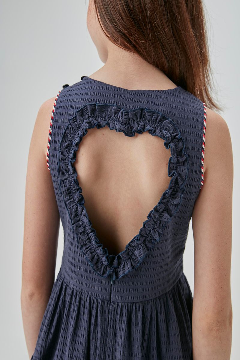 VESTIDO MIDI EM TRICOLINE ANARRUGA C/ CORAÇÃO VAZADO COSTAS