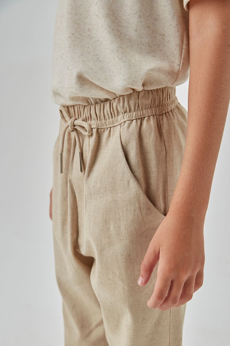 Calça kids masculina social de linho misto com viscose, um conforto extra ao uso diário. Elástico na cintura volta toda e rolitê do próprio tecido do corpo finalizado com ponteira personalizada da marca, facilitando o ajuste necessário para cada tipo de corpo. O formato da calça é mais soltinha despojada e comprimento no tornozelo tranzendo modernidade ao produto. Punho barra com elástico interno para melhor ajuste ao corpo. Lapela traseira sobreposta bem social. Esta calça facilmente combina com polo, bata ou camiseta, um produto cheio de charme e estilo ao look.