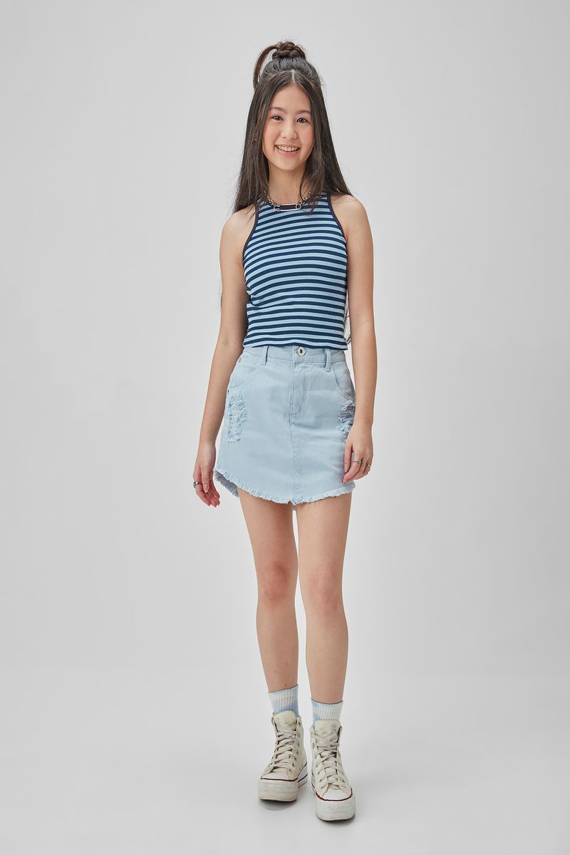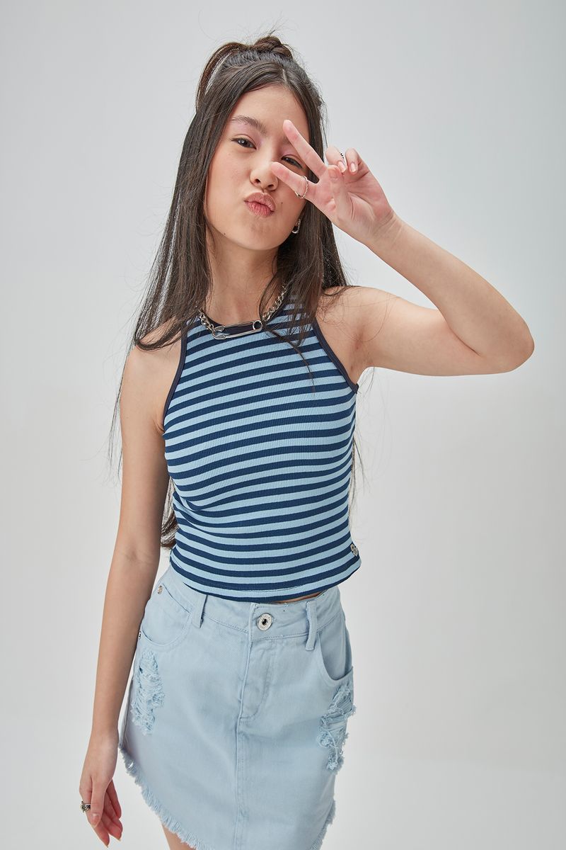 Regata twin em malha canelada listrada com detalhe de alças e decote em cotton modelo básico e muito funcional para diversos looks