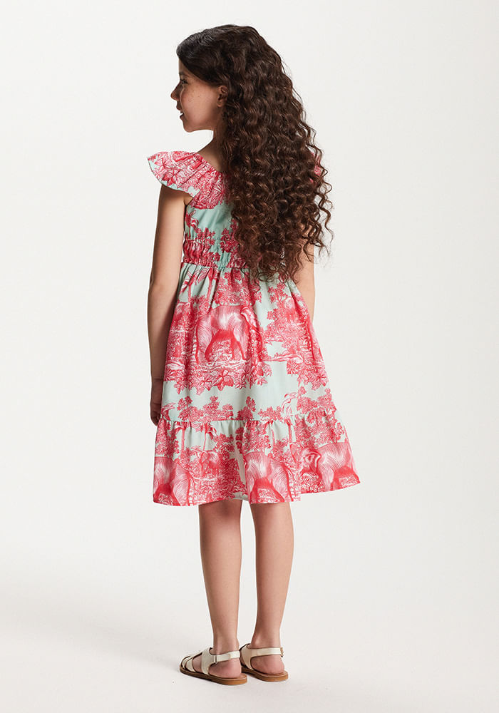 VESTIDO MIDI EM TRICOLINE ESTAMPADA C/ BABADOS