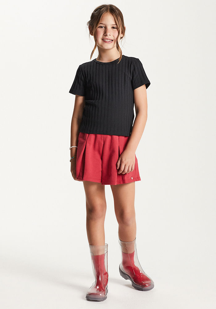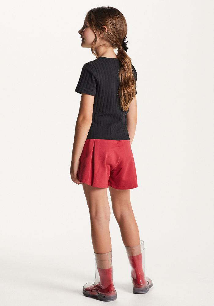 Short em moletom sem felpa, com cós em ribana para ajuste confortável. Possui pregas
