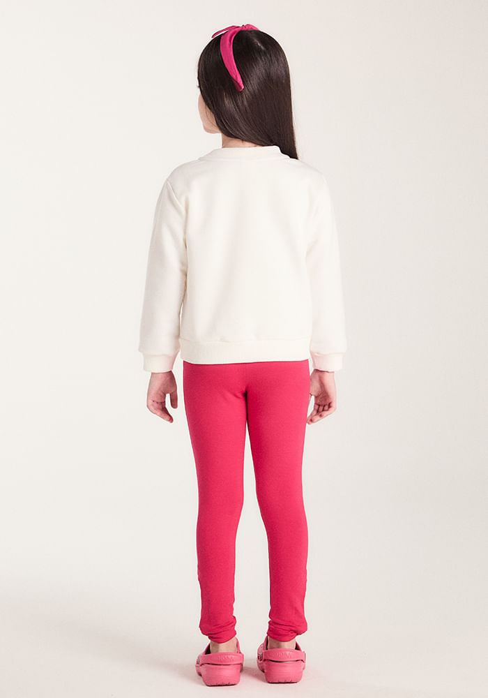 Conjunto blusa em moletom sem felpa de algodão detalhe de silk frente toque zero e aplicação de strass. Calça legging em moletinho de algodão com viscose sem felpa com detalhe de abertura com torção na barra da legging.