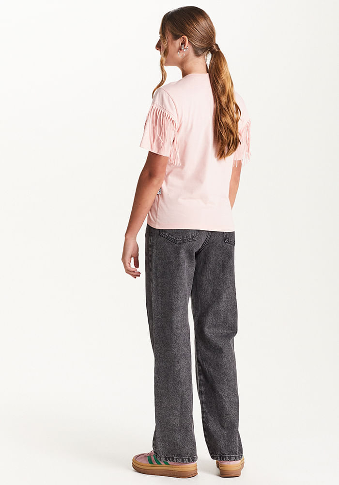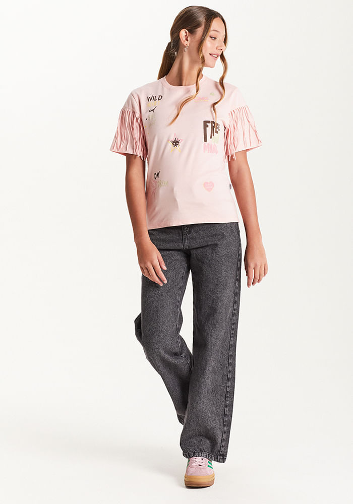 CAMISETA OVERSIZED EM MALHA C/ ESTAMPA E FRANJAS